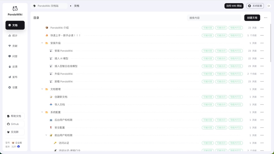 PandaWiki 是一款 AI 驱动的开源知识库搭建系统,帮助你快速构建智能化产品文档、技术文档、FAQ、博客系统,借助大模型的力量为你提供 AI 创作、AI 问答、AI 搜索等能力。
